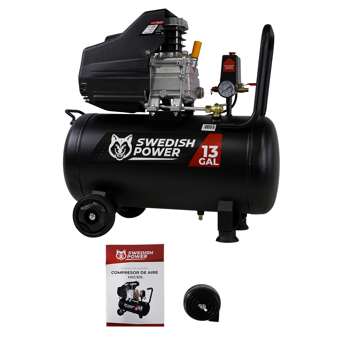 Compresor marca SWEDISH HUSKY POWER con potencia de 3.5 hp. Ideales para sopletear, pintar, barnizar, uso en talleres y vulcanizadoras.