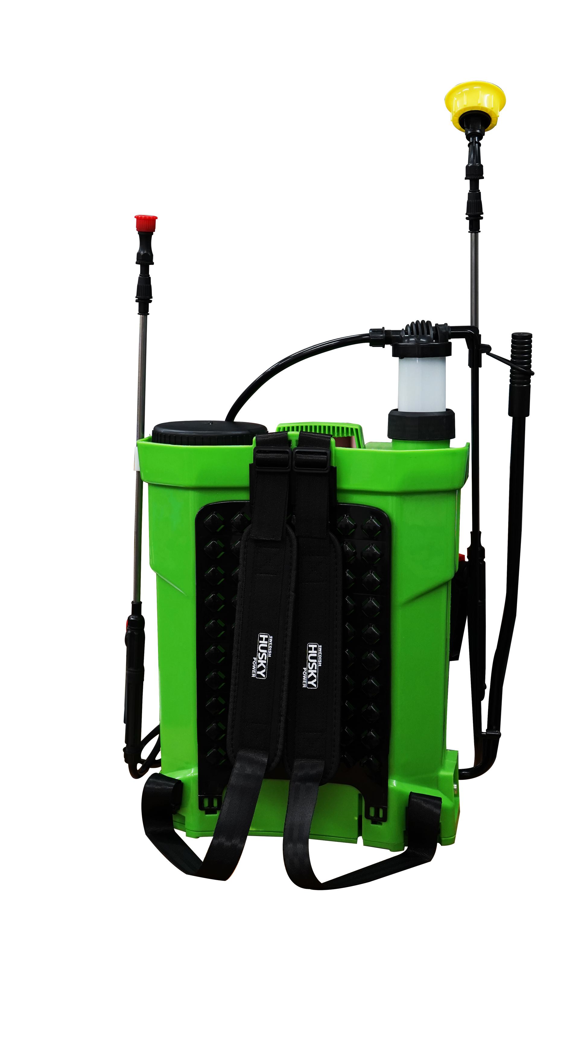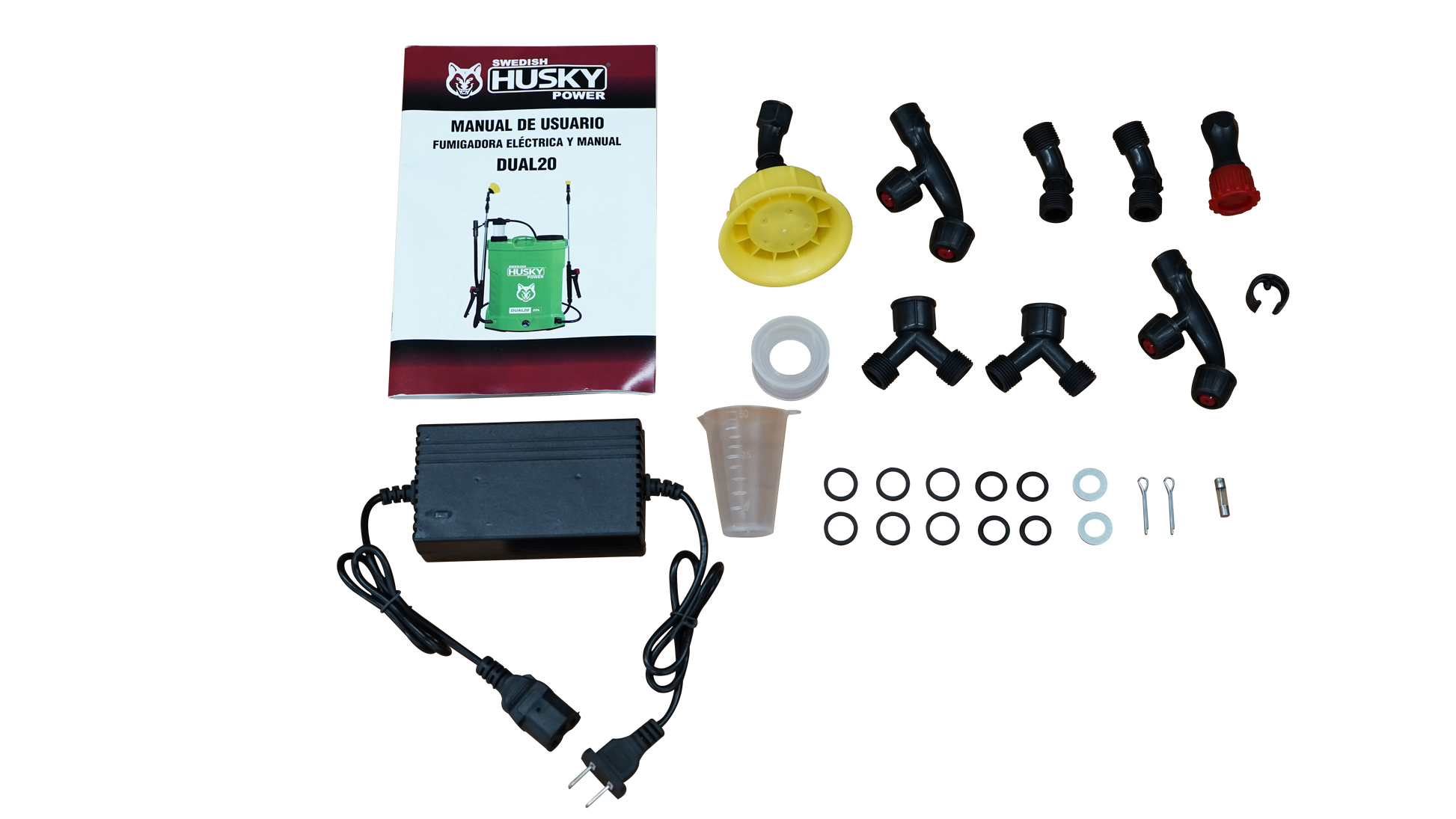 Fumigadora híbrida (Eléctrica a Batería y Manual) semiprofesional con lanzas expandibles marca SWEDISH HUSKY POWER. Gracias a su potente batería de 12v, ofrece un rango de trabajo de 3-4 horas y con su sistema de bombeo manual, puede continuar fumigando el tiempo que sea necesario. Manguera 1.2 metros.
