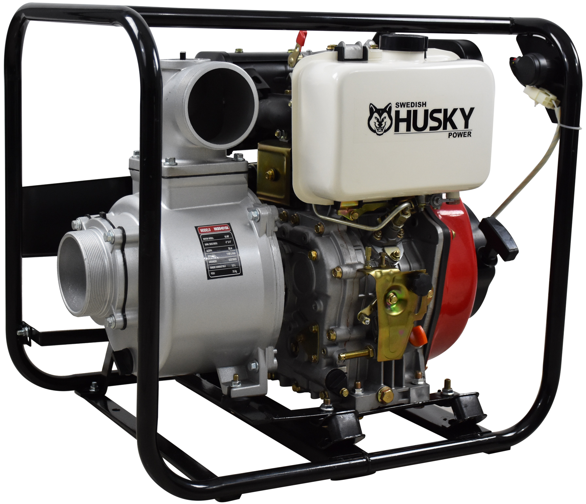 Motobomba autocebante 4x4 con motor diésel de 4 tiempos marca Swedish Husky Power y arranque eléctrico. Ideales para irrigación de campo, cultivo de huertos, verter agua en lagunas y granjas, aspersores y cañones.