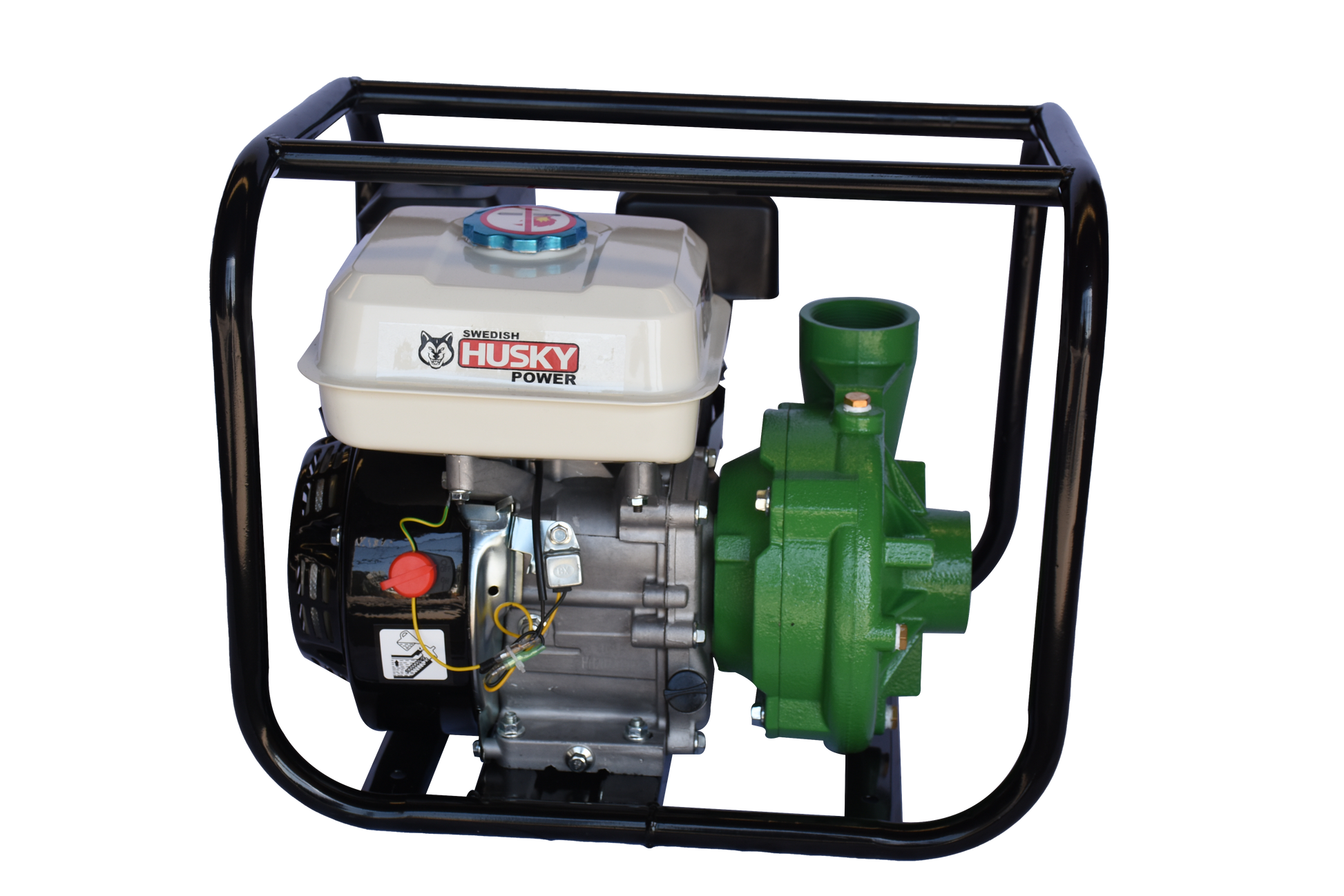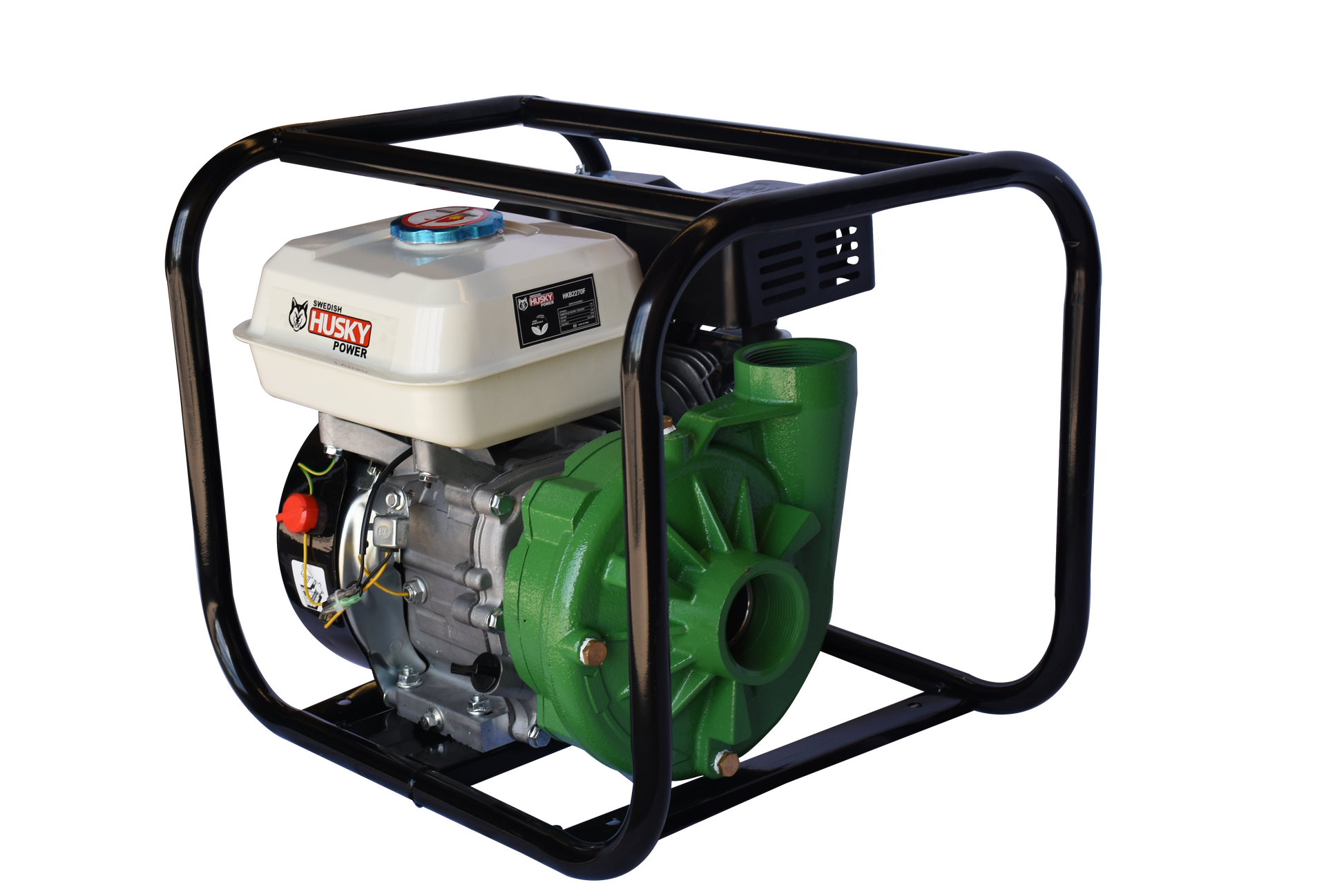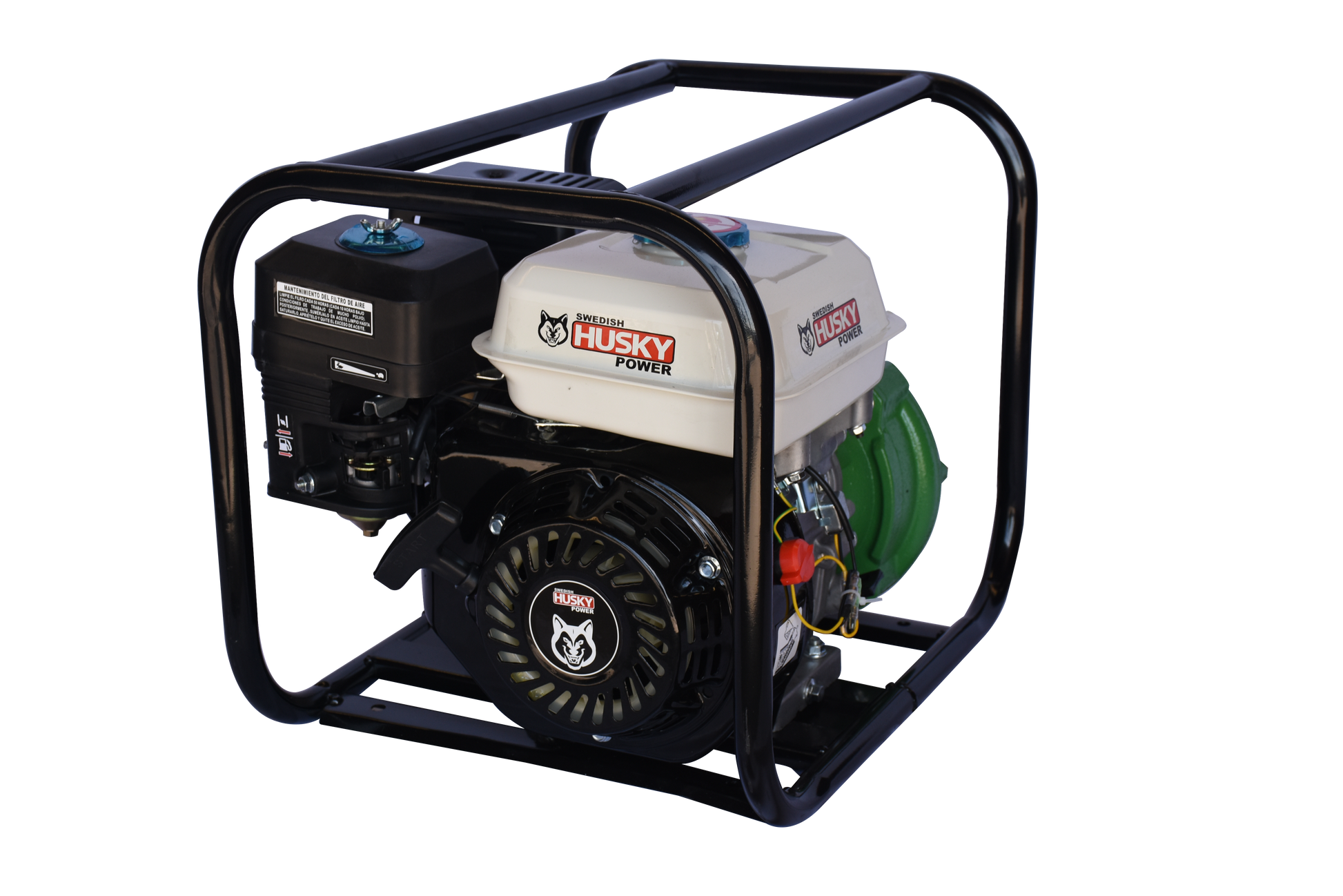 Bomba de agua agrícola semiprofesional de 2 x 2 pulgadas con motor de 4 tiempos a gasolina marca Swedish Husky Power.