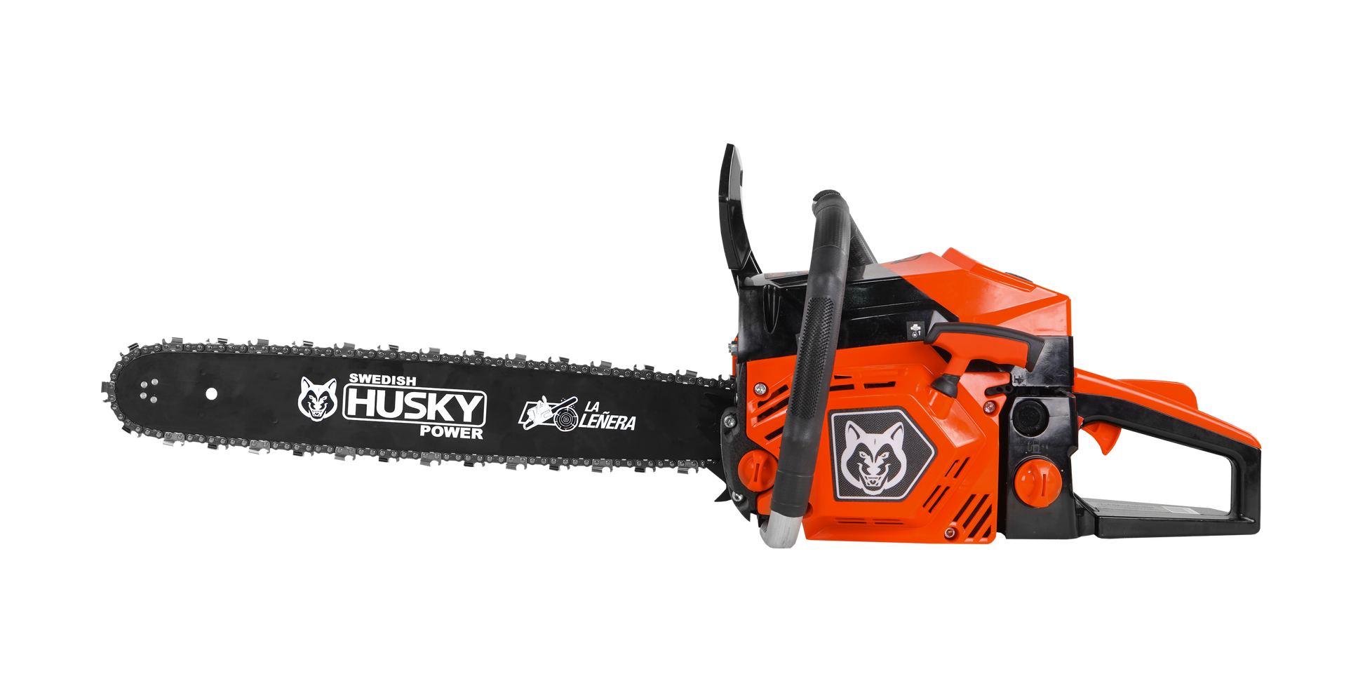 Motosierra para podas y derrames con motor de gasolina de 2 tiempos marca Swedish Husky Power.