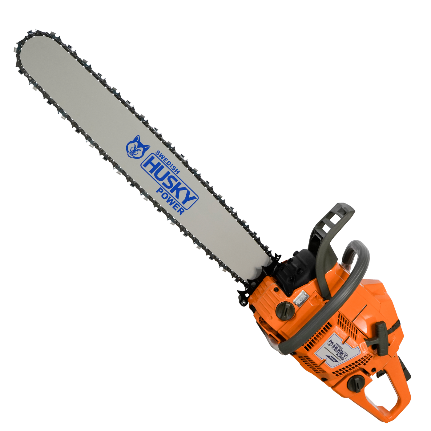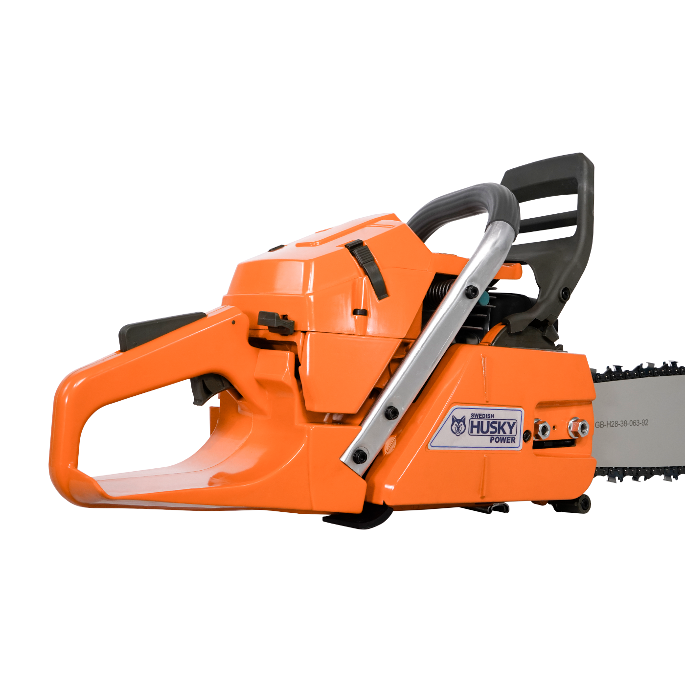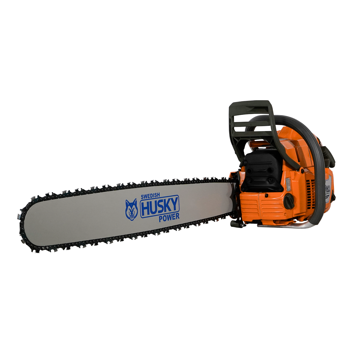 Motosierra semiprofesional para podas y derrames con motor de gasolina de 2 tiempos marca Swedish Husky Power.