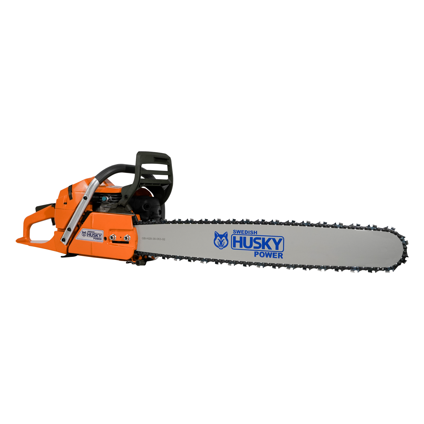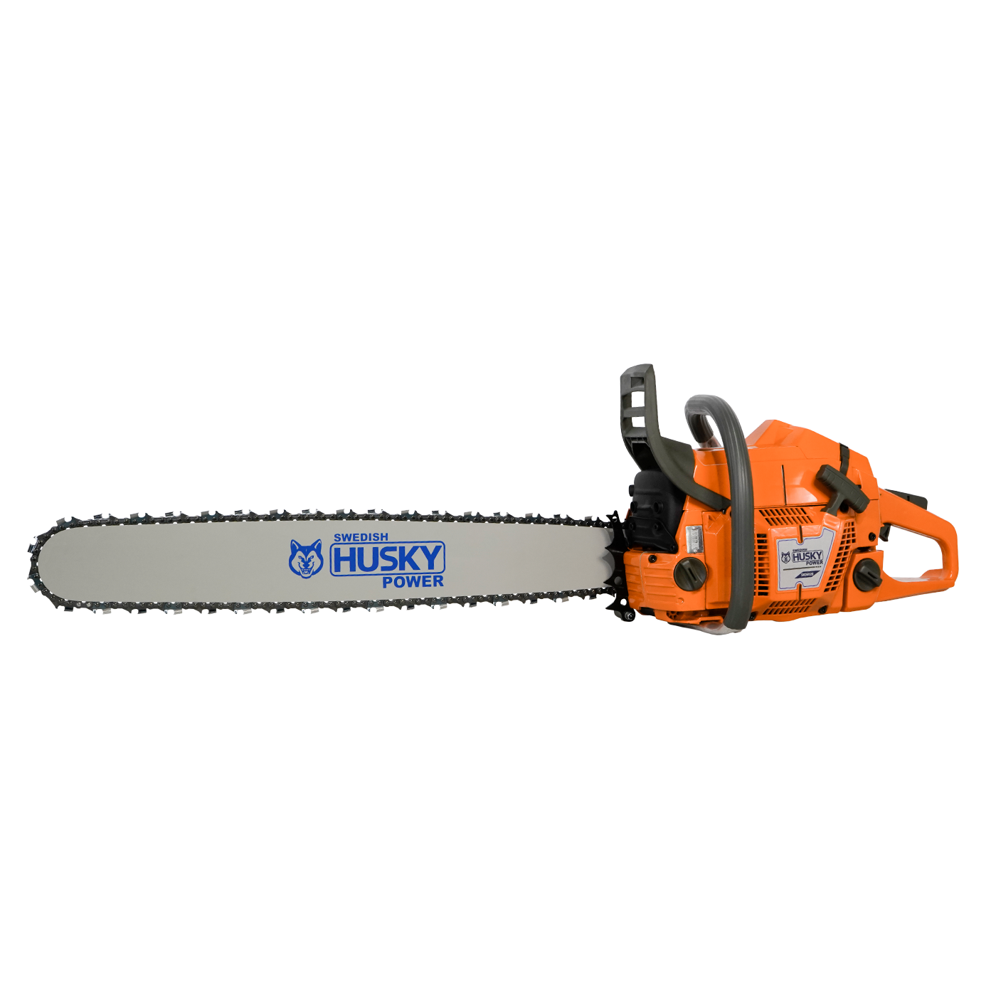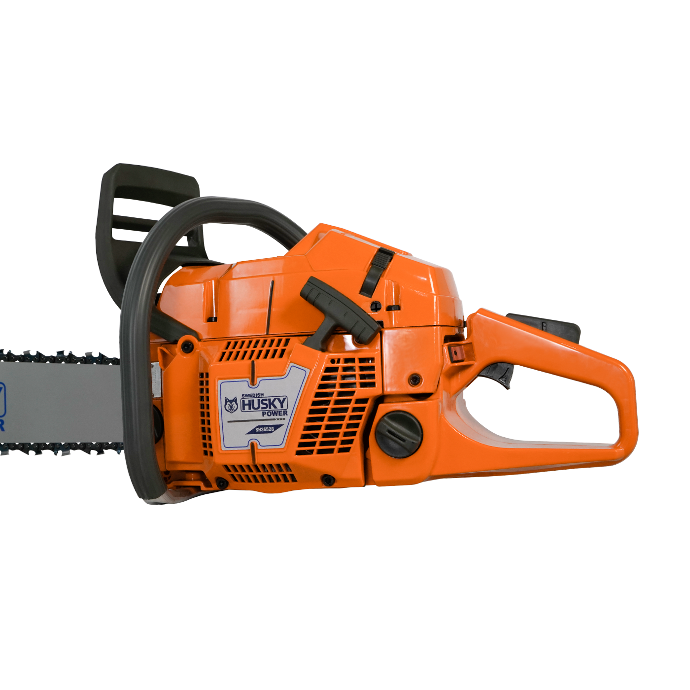 Motosierra semiprofesional para podas y derrames con motor de gasolina de 2 tiempos marca Swedish Husky Power.
