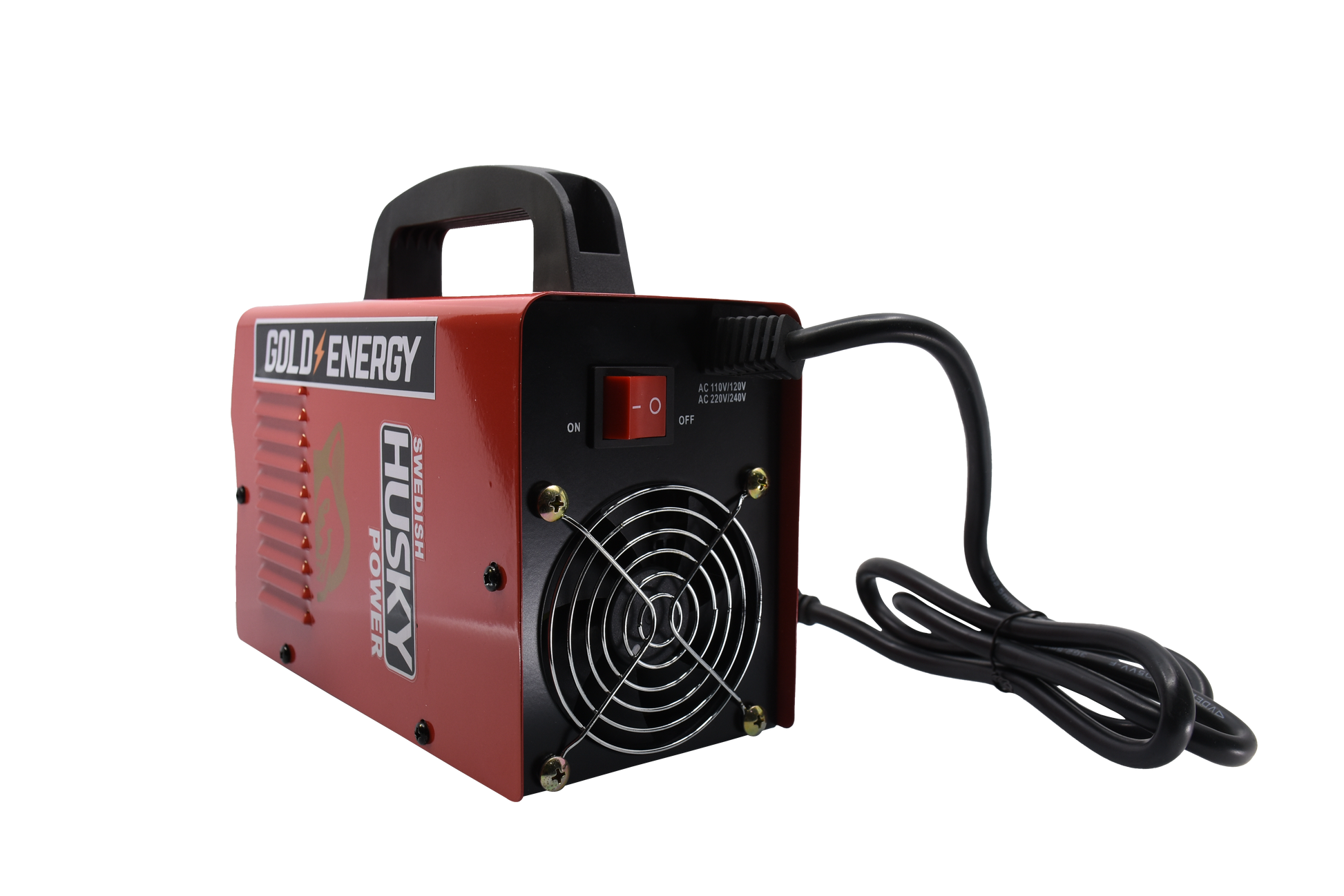 Soldadora Inverter marca SWEDISH HUSKY POWER trabaja en corrientes 110v/220v esto la hace más práctica para poder usarla con la corriente doméstica. Incluye careta, cepillo de alambre y juego de cables porta electrodos.